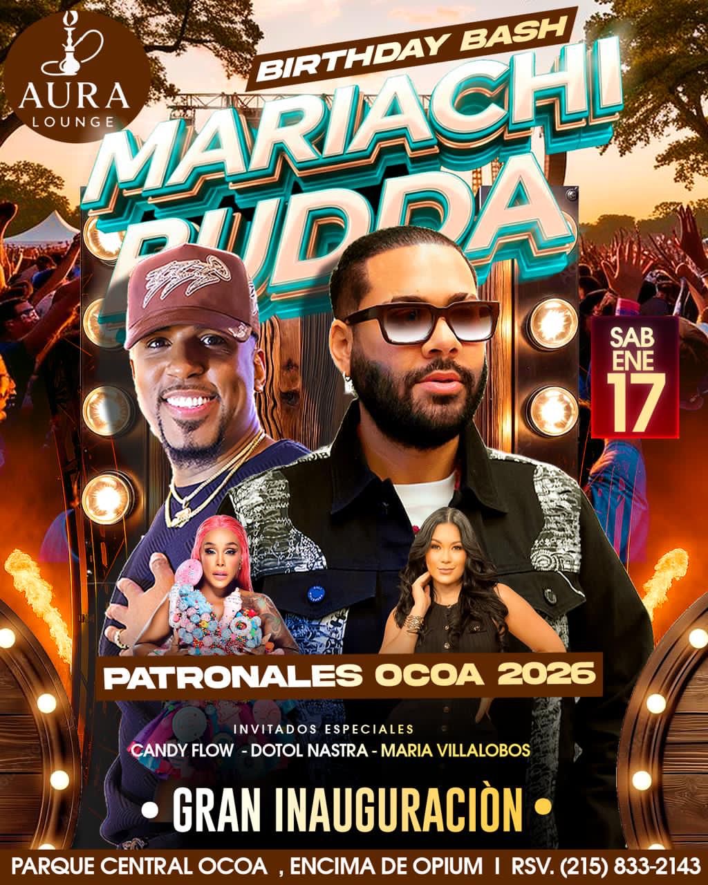El exponente urbano Mariachi Budda celebrará su cumpleaños por todo lo alto en el marco de las Patronales Ocoa 2026, con un evento especial que marcará la gran inauguración de Aura Sport Bar.