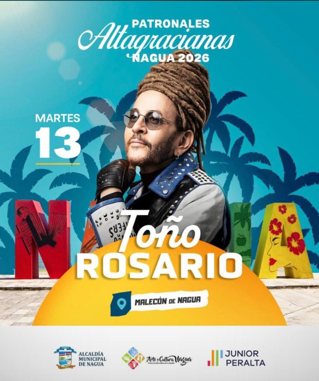El icónico merenguero Toño Rosario será una de las grandes atracciones de las Patronales Altagracianas Nagua 2026, con un concierto pautado para el martes 13 en el Malecón de Nagua.