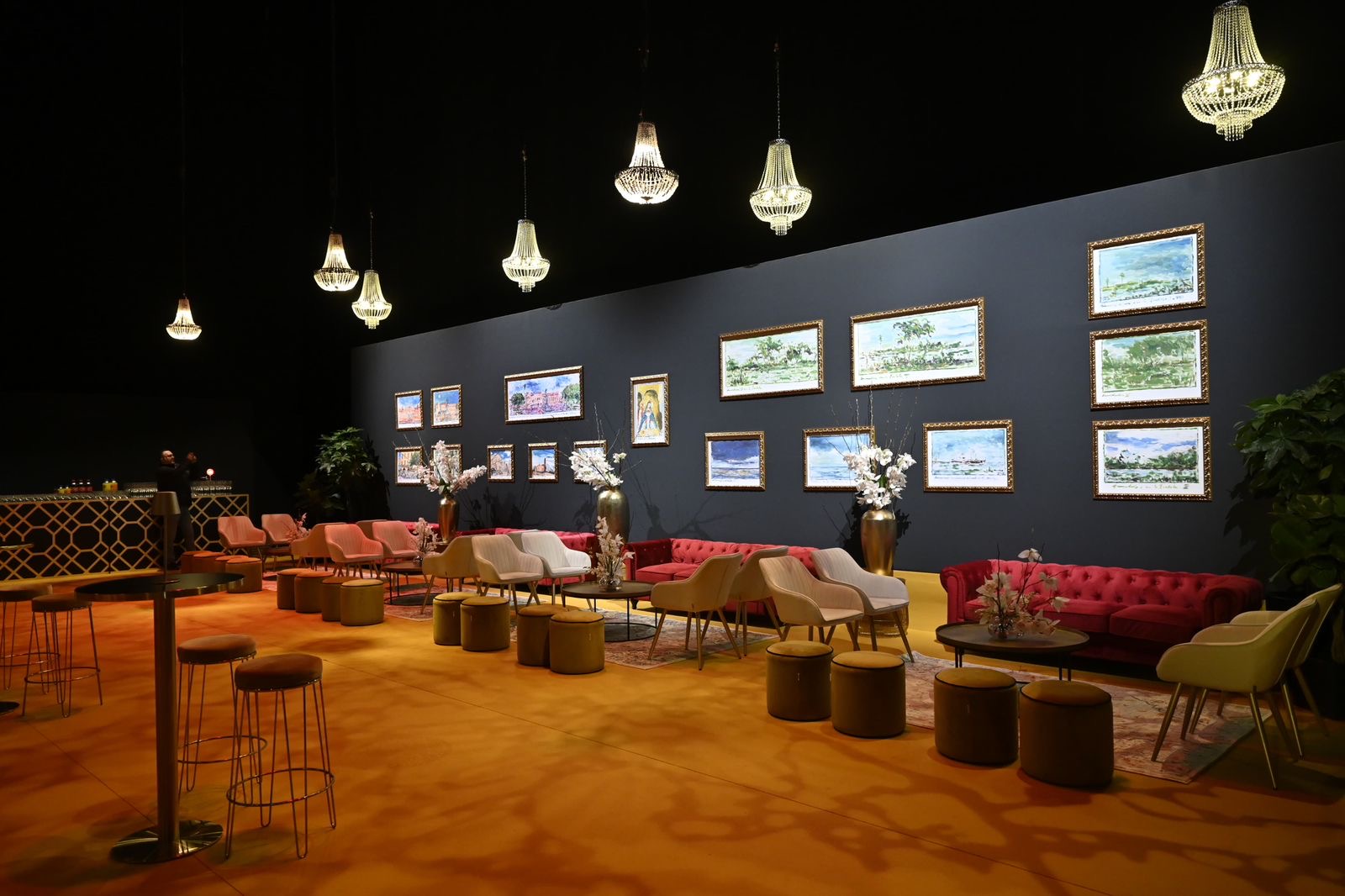 El ambiente del evento reforzó el carácter simbólico del homenaje: desde la explanada del Teatro Real iluminada con los colores de la bandera dominicana, hasta una escenografía interior inspirada en la piedra larimar. Las obras de Cestero acompañaron el recorrido de los invitados por las áreas del recinto, mientras la velada fue amenizada por la música del artista dominicano Manny Cruz, creando una experiencia cultural que celebró el arte, la identidad y el orgullo nacional.