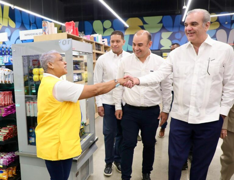Abinader recorrió las instalaciones conoció el funcionamiento del establecimiento y conversó con colaboradores sobre las oportunidades laborales generadas y el impacto de la apertura en la comunidad., como gesto simbólico ejecutivos de la empresa le entregaron una tarjeta Siremas.